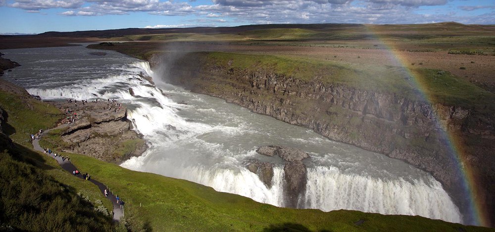 The Golden Circle tour allows you to visit some of Iceland’s most stunning sights, starting with the Geysir geothermal area where the Strokkur geyser shoots a column of water up to 30 metres (98 ft.) into the air every 4-8 minutes in a thrilling display of nature’s forces. The visit continues with Gullfoss (Golden Falls) waterfall, created by the river Hvítá, which tumbles and plunges into a crevice some 32 m (105 ft.) deep.